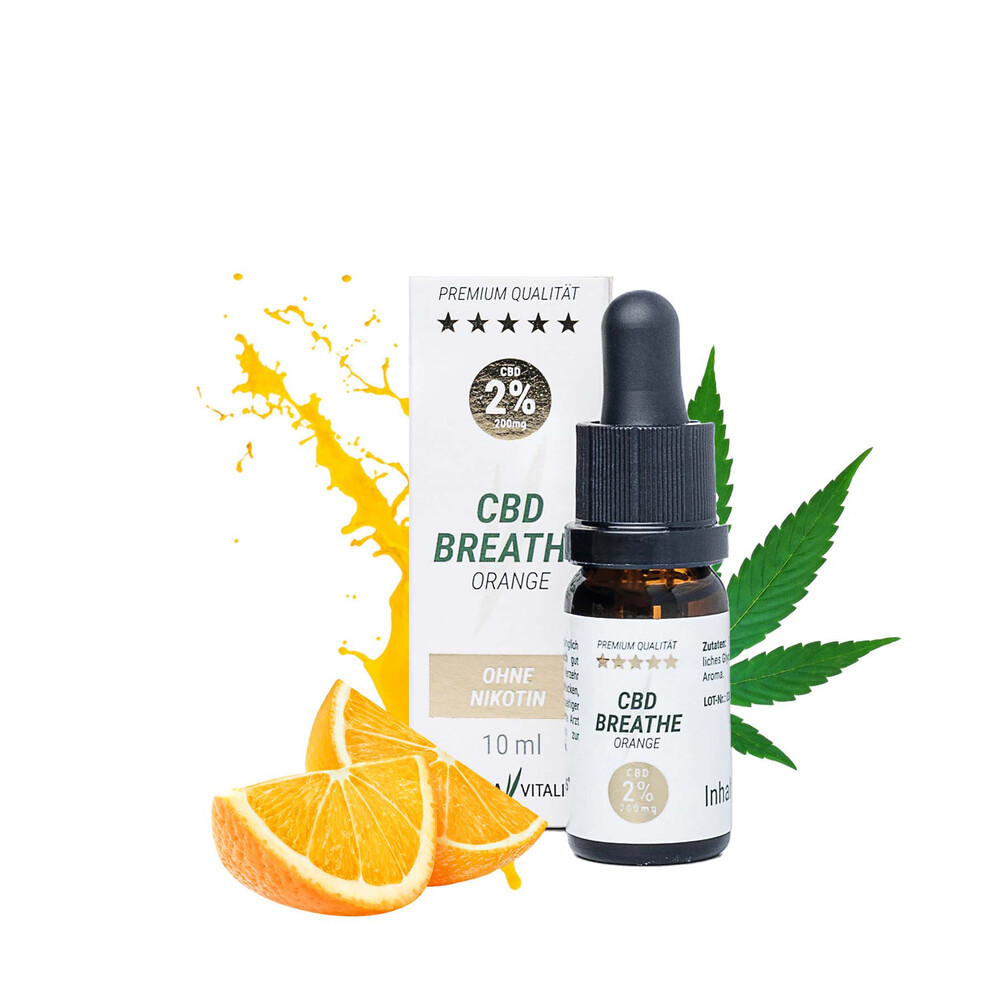 It is important, not to heat normal CBD oil in a vaporizer, because the oil, which is intended for a sublingual intake, is not suitable for vaporizing. Suitable for vaporizing are only specially prepared CBD-liquids. And this exactly is CBD Breathe Orange. Therefore the name “Breathe”.